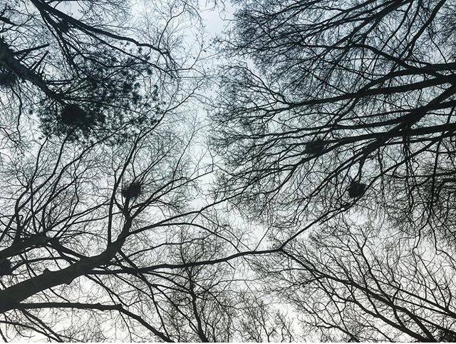 Het scherpe krassen van een zwarte kraai.